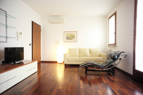 Appartamento bicamere arredato disposto al piano primo in una piccola ed elegante palazzina e composto da soggiorno con angolo cottura, 2 camere, un servizio dotato di doccia e vasca due terrazzi, garage doppio di 38 mq. per due auto posto al piano interrato. Il riscaldamento è di tipo autonomo ed è presente l'aria condizionata. Rif. Immobile n° 622